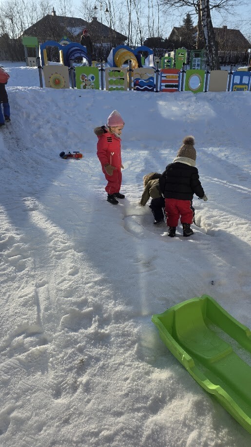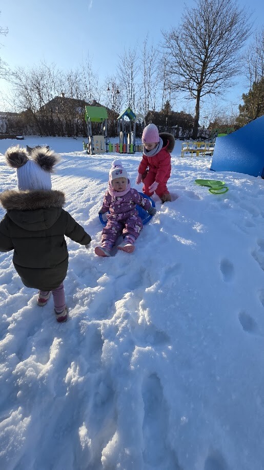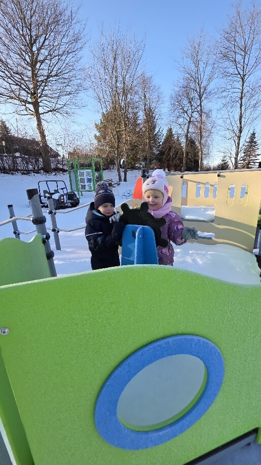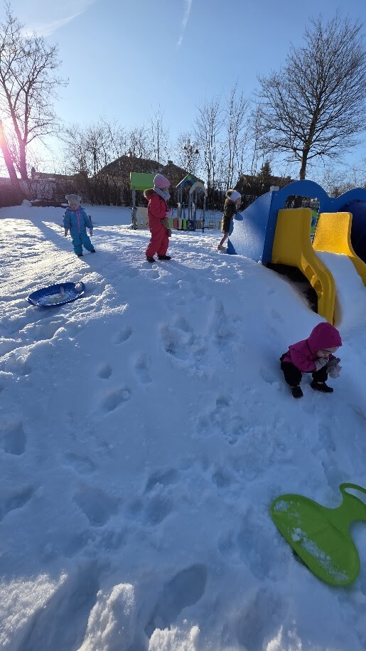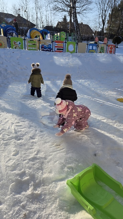Korzystając z zimowej aury, odbywały się także zabawy na śniegu, jazda na sankach, lepienie bałwanka zabawy na nowym placu zabaw. Takie zabawy sprawiały dzieciom wiele radości i zachęciły do aktywności na świeżym powietrzu.