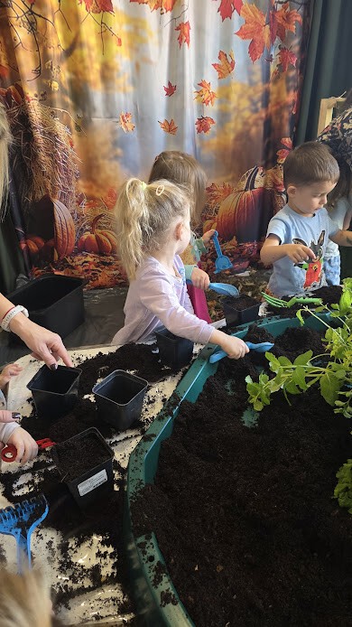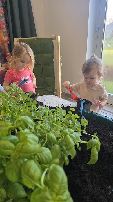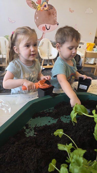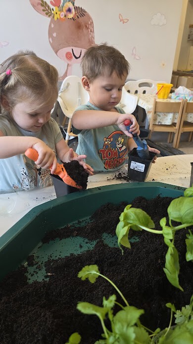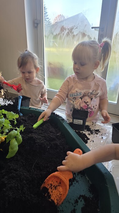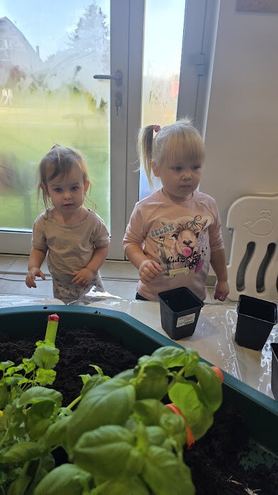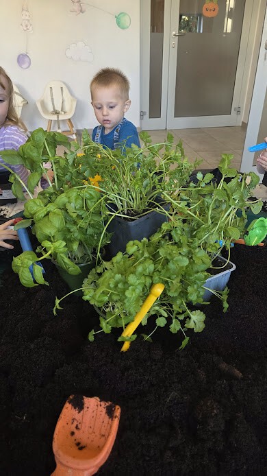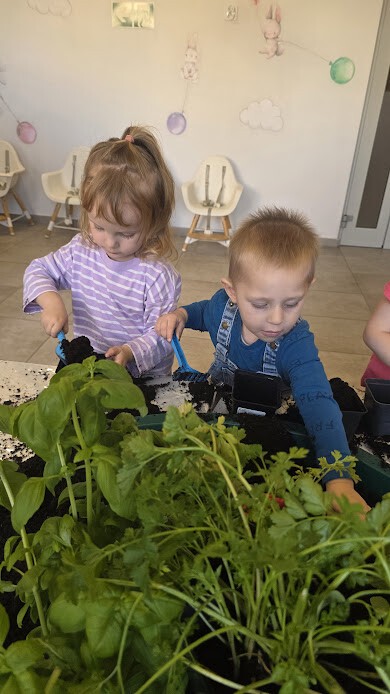 Podczas tych zajęć dzieci poznały świat aromatycznych roślin- takich jak bazylia, mięta, pietruszka odkrywając ich zapachy, smaki i zastosowanie w kuchni oraz codziennym życiu. Wspólna praca sadzeniem dymki cebuli, podlewanie i pielęgnacją ziół rozwija cierpliwość, odpowiedzialność i wrażliwość przyrodniczą, a także integruję grupę.